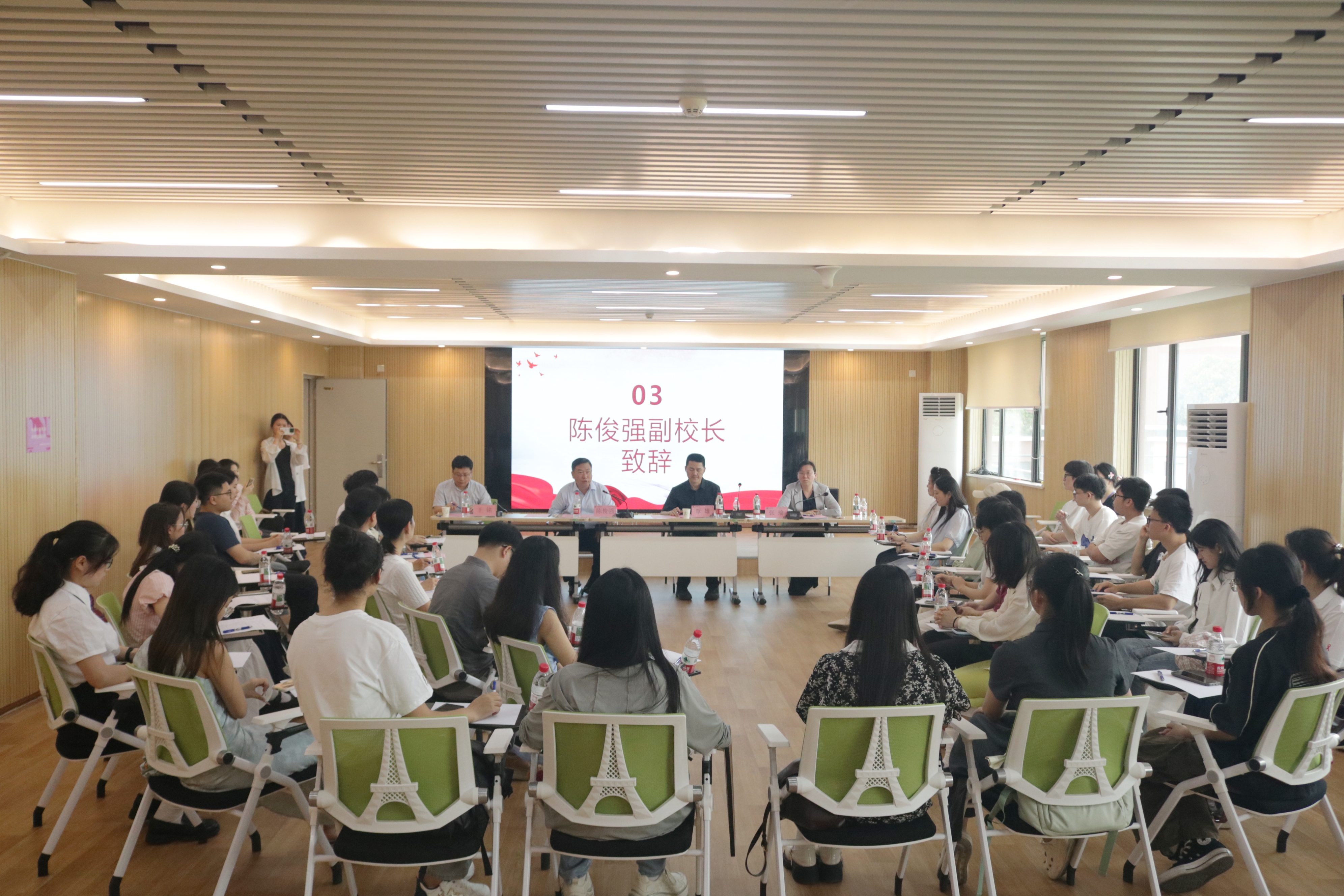 下午,陈俊强副校长与我校第一届“执笔为镜 照见成长”心理征文比赛获奖学生代表座谈交流,心理中心教师、辅导员代表等共同参与了座谈。陈俊强充分肯定同学们在征文写作中的优异表现,强调学校始终将学生心理健康放在育人工作的重要位置,并与大家围绕学业指导、生涯规划等成长话题亲切交流。会上,陈俊强为第一届心理主题征文比赛获奖同学代表颁奖,该征文比赛得到广大同学的积极参与,共收到1700余篇投稿。